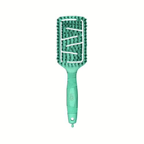 Brosse paddle biosourcée en fibres végétales et poils de sanglier. Démêle sans casser, lisse et fait briller la chevelure tout en respectant le cuir chevelu.